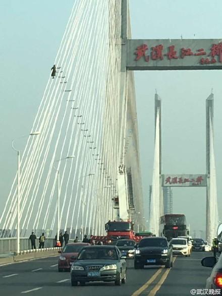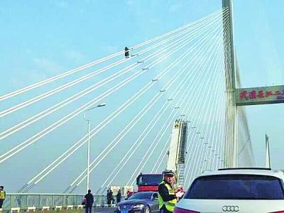 據武漢晚報13日報道,12日下午1點半,一名六旬男子爬上湖北武漢長江二橋斜拉索,離橋面約30米,聲稱要跳橋。民警、消防趕到現場救援,僵持一個小時后,消防出動云梯施救,方才將輕生男子救下接回橋面。這起事故導致二橋和漢口、武昌多處道路交通擁堵近3個小時,直至昨天下午5點,交通才恢復正常。