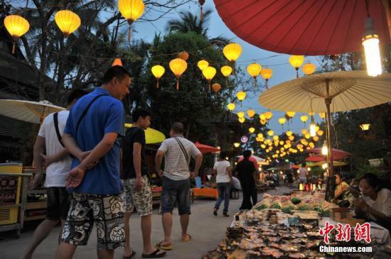 資料圖:云南西雙版納“告莊西雙景”內(nèi),逛夜市的游客。 中新社記者 任東 攝