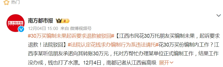 #30萬買編制未果起訴要求退款被駁回#