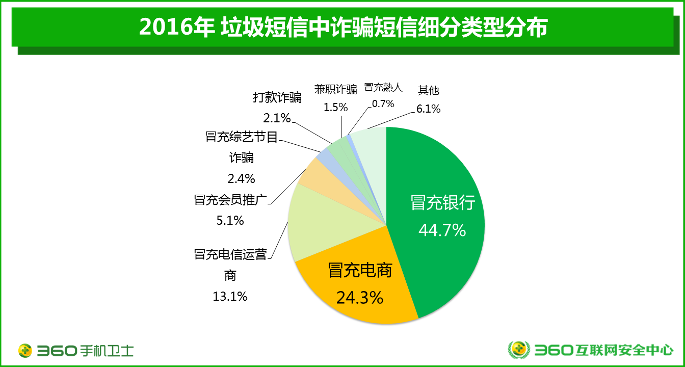 和推廣類短信相比,詐騙類和違法類短信所占比例不高,但是危害卻是最大的,會給手機用戶造成人身與財產(chǎn)損失。