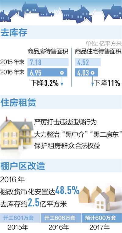 棚戶區(qū)改造是重大的民生工程。2015年、2016年,全國棚改分別開工了601萬套、606萬套,今年的計劃目標是600萬套。陳政高介紹,今年中央棚改補助資金已經有了安排,比去年有所提高,“今年還要進一步推進棚改貨幣化安置,特別是在三四線城市和縣城,要大幅度提高比例,加快棚改進度、減少重復建設?!?/p>