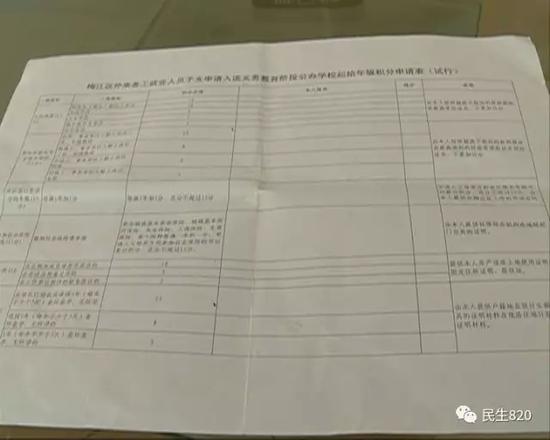 因?yàn)樽约旱膽艏辉诿方瓍^(qū),所以必須按照算積分的方式,才能更好地選擇學(xué)校??墒?,當(dāng)他看到《梅江區(qū)外來務(wù)工就業(yè)人員子女申請入讀義務(wù)教育階段公辦學(xué)校起始年級積分申請表》(試行)的最后一條規(guī)則寫著:“要由本人提供派出所的無犯罪記錄”時(shí),劉先生表示,這如果有污點(diǎn),提供之后不是對小孩很不利?