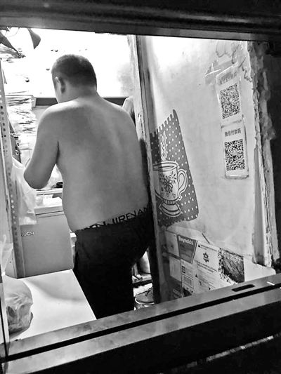 6月16日晚8時許,北青報(bào)記者再次來到“望京小腰(××店)”,看到窗口外圍聚了數(shù)名外賣平臺的送餐員,等待取餐。燒烤店內(nèi),兩名青年男子,一人赤膊,手拿多份訂單配置菜品、刷油、撒調(diào)料,另一人背身在燒烤架上烤制菜品。食物烤好后,赤膊男子用錫紙包裹好,外面套上紙袋和塑料袋,遞給送餐員。北青報(bào)記者詢問老板可否堂食,老板答復(fù)稱“可以”,但是要借用麻辣燙店內(nèi)桌椅。