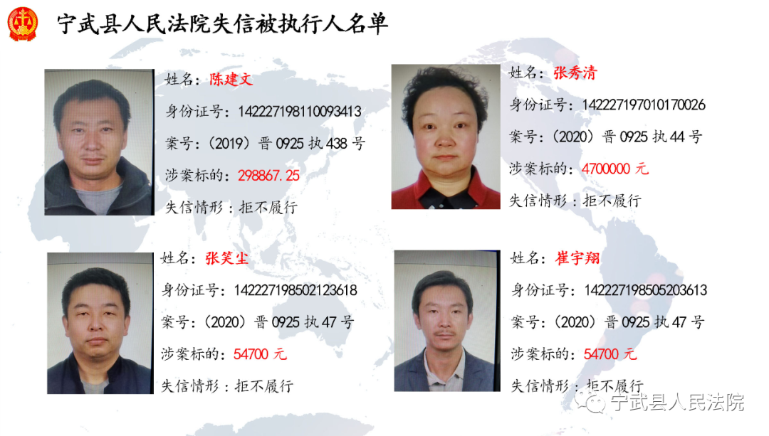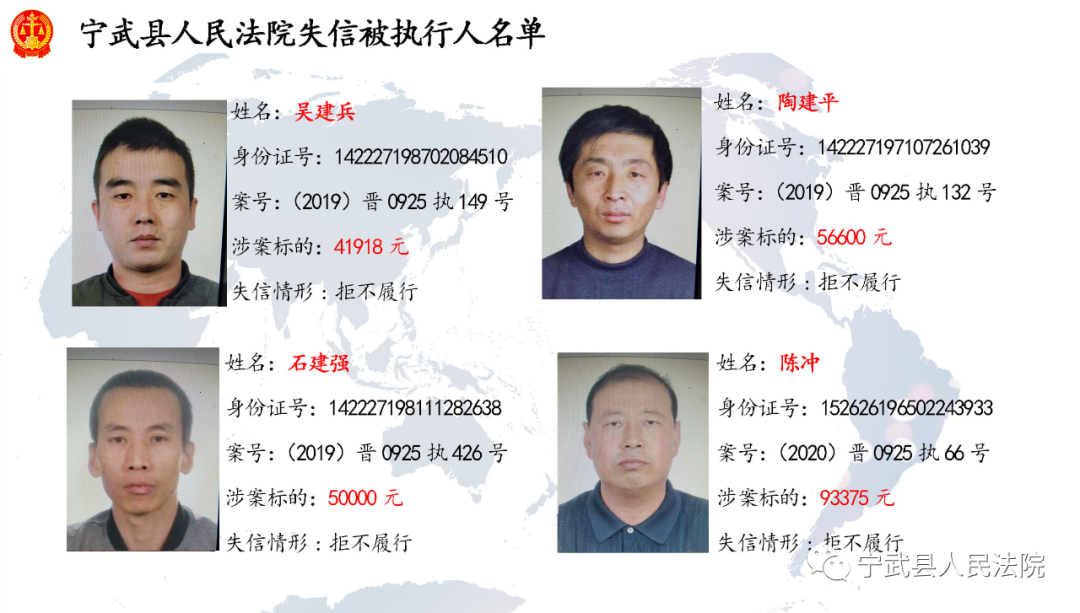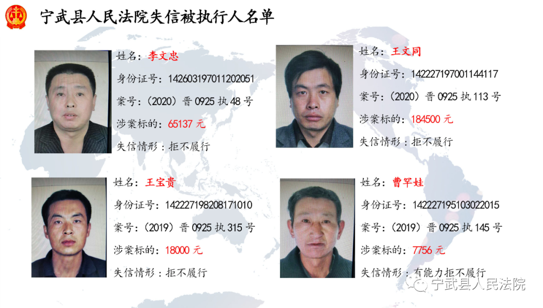上述人員(公司)納入失信被執(zhí)行人名單庫(kù)(可通過(guò)中國(guó)執(zhí)行信息公開網(wǎng)查看),同時(shí),向公安、工商、房管、高鐵、民航等部門以及銀行等金融機(jī)構(gòu)和招標(biāo)單位予以通報(bào),請(qǐng)相關(guān)部門對(duì)其在準(zhǔn)入資格、任職資格、高消費(fèi)、出境等方面給予限制,并請(qǐng)全社會(huì)對(duì)其進(jìn)行監(jiān)督。
