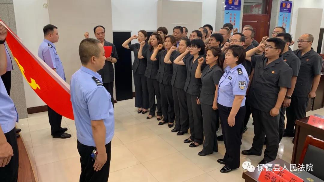 我宣誓:“我志愿加入中國共產(chǎn)黨,擁護(hù)黨的綱領(lǐng),遵守黨的章程,履行黨員義務(wù),執(zhí)行黨的決定,嚴(yán)守黨的紀(jì)律,保守黨的秘密,對黨忠誠,積極工作,為共產(chǎn)主義奮斗終身,隨時(shí)準(zhǔn)備為黨和人民犧牲一切……”6月24下午,我院黨員身著制服,手持入黨誓詞,面向黨旗,右拳高擎,整裝肅立,在黨組書記、院長潘富榮的領(lǐng)誓下,進(jìn)行了莊嚴(yán)宣誓。通過重溫入黨誓詞,可以激勵(lì)黨員干警嚴(yán)格要求自己,牢記入黨誓言,堅(jiān)定為共產(chǎn)主義事業(yè)而奮斗終身的信心和決心。廣大黨員干警將一如繼往的在今后審判執(zhí)行各項(xiàng)工作中,不忘初心、牢記使命、履職盡責(zé),時(shí)刻牢記黨和人民的信任重托,忠實(shí)履行黨賦予的神圣職責(zé)。