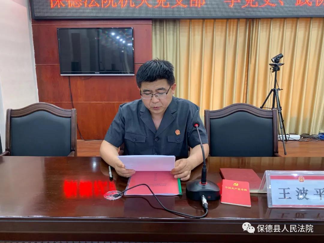 為了貫徹落實(shí)縣委組織部《關(guān)于進(jìn)一步規(guī)范主題黨日活動(dòng)的實(shí)施方案》的文件精神,強(qiáng)化黨員的身份意識和責(zé)任意識,近日,保德法院黨組組織開展了以弘揚(yáng)“學(xué)黨史、踐初心”為主題的主題黨日活動(dòng)。