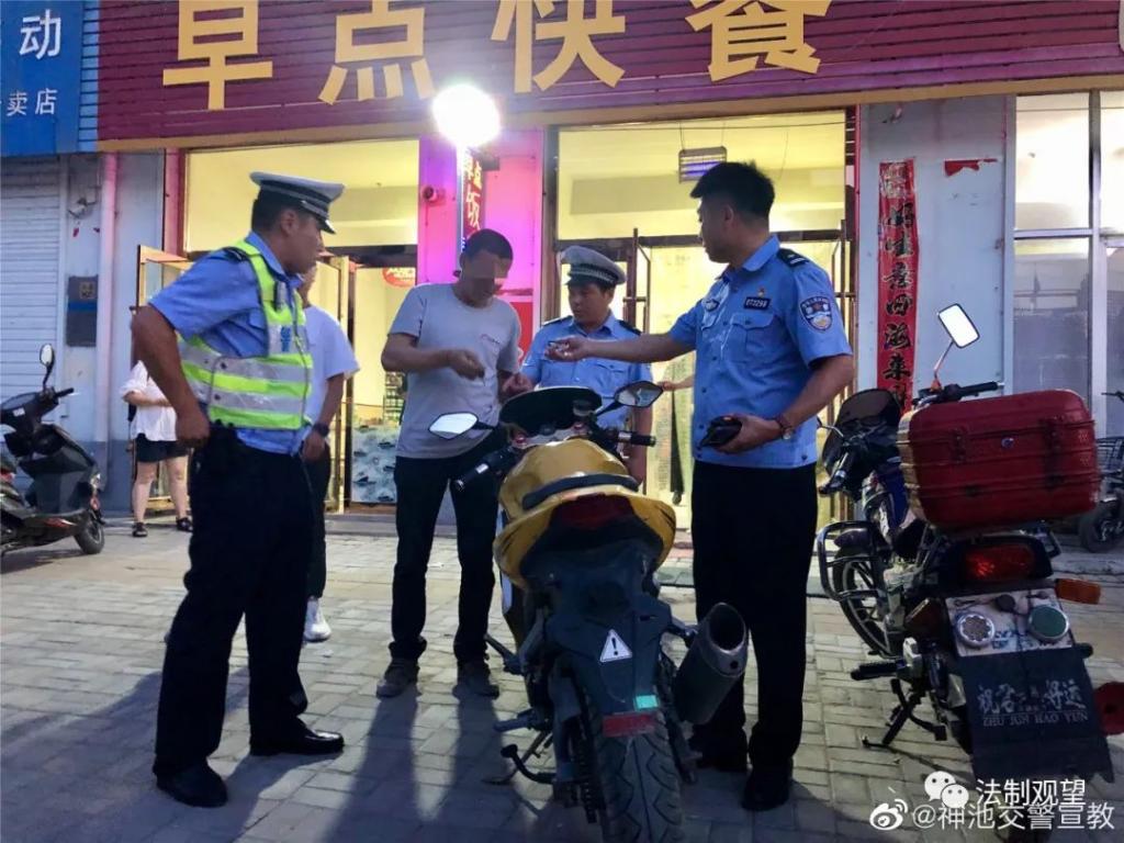 7月14日晚9時許,神池縣公安局交警大隊高俊峰大隊長在城區(qū)街道對交通秩序管理調(diào)研時,發(fā)現(xiàn)一家快餐店門口停放著一輛無牌大功率二輪摩托車,疑似“炸街”摩托,考慮到騎乘人可能在店里吃飯,甚至飲酒,存在重大違法和交通安全隱患。