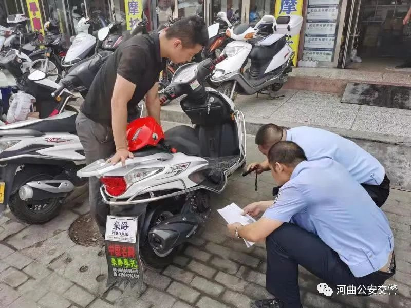 為加強(qiáng)和改善摩托車(chē)的源頭安全管理工作,杜絕無(wú)牌無(wú)證摩托車(chē)上路行駛,預(yù)防和減少道路交通事故,7月16日上午,河曲縣公安局交警大隊(duì)為了方便群眾辦牌辦證,減少群眾跑路,組織車(chē)管所民警前往縣城豪爵鈴木摩托車(chē)專(zhuān)賣(mài)店集中批量查驗(yàn)在售摩托車(chē),然后由摩托車(chē)銷(xiāo)售業(yè)主對(duì)已售車(chē)輛幫忙收集整理資料統(tǒng)一提交車(chē)管所,由車(chē)管所審核后上牌。