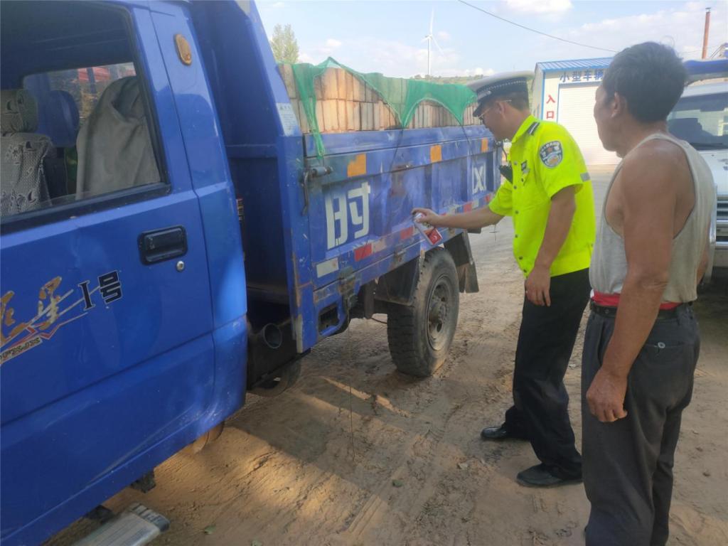 行動中,義井中隊設(shè)卡檢查時,徐某駕駛的農(nóng)用三輪車裝載著重物還違法載人,當(dāng)場被執(zhí)勤民警攔截,同時勸阻車上的人員下車,對他們耐心講解農(nóng)用車違法載人的危害,指出其存在的交通安全隱患,讓駕駛?cè)诵炷硰乃枷肷鲜艿骄窘逃袑嵪r(nóng)用車交通違法行為帶來的事故隱患,并在車身噴涂“嚴禁載人”宣傳警示語。