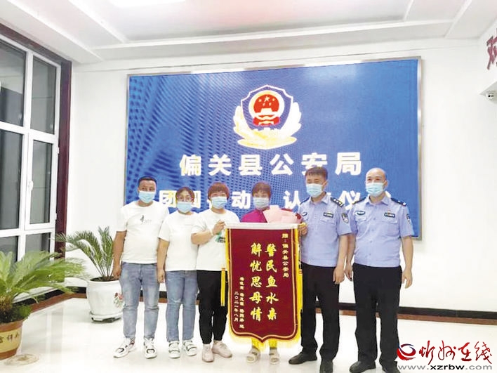 事后,楊某姐弟三人向公安民警獻(xiàn)上錦旗:“警民魚水親,解憂思母情?!钡艿軛钅吃醇拥卣f:“功夫不負(fù)有心人,正是有了咱們公安民警的幫助,才圓了我們一家的團(tuán)圓夢?!?山高水遠(yuǎn),割不斷骨肉親情的回家企盼;千難萬險(xiǎn),擋不住“團(tuán)圓行動”的愛民步伐?!盁o論多遠(yuǎn),不管多久,都要找到你”,這是每個(gè)離散家庭的心愿,也是每一位民警的信念。(赫在榮)