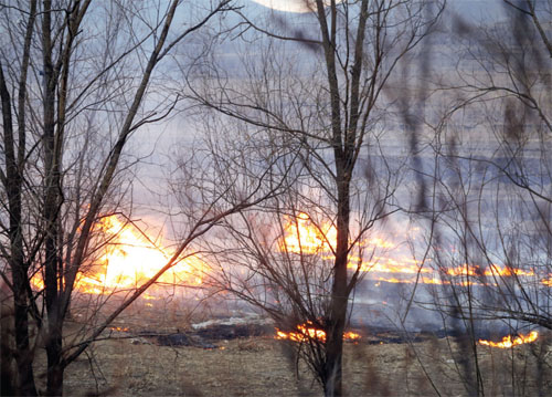 昨日(2月25日)傍晚,在忻阜高速與大運(yùn)高速互通立交橋西南方向的茫茫田野里,只見煙霧彌漫,火光沖天?;鸷R谎弁坏竭呺H,升騰、翻滾的濃煙,在空中彌漫,嚴(yán)重影響司機(jī)視線,過往車輛無不小心翼翼。