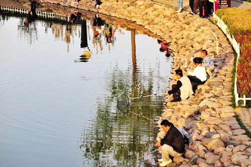 春光明媚,草綠花香,城區(qū)人民公園游人如織,可是總有一些人無視公園里“禁止垂釣”的警示標(biāo)牌,在湖邊垂釣、撈魚,給公園美景增添了一抹不文明、不和諧的色彩。圖為4月20日下午記者攝于人民公園。(魯明強(qiáng) 攝)