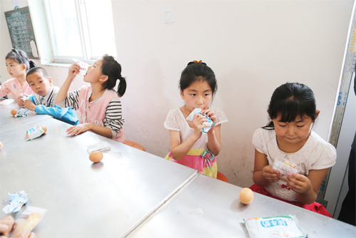 6 月23 日,靜樂縣中莊鄉(xiāng)中莊村小學學生正在吃領到的“營養(yǎng)餐”。截至目前,該縣共有4所初中、32 所小學、40 個教學點的2391 名中小學生每天均可享受到農村義務教育“營養(yǎng)餐”所帶來的溫暖。(閆曉梅 攝)