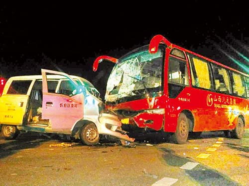 本報訊 7月10日22時20分左右,在忻州城區(qū)慕山橋北端的十字路口,一輛城際客運汽車與一輛面包車相撞,客運汽車前擋風(fēng)玻璃粉碎毀損,面包車前部嚴重變形,面包車上的傷者被隨后趕到的救護車送往醫(yī)院搶救,交警接警后也在第一時間趕赴現(xiàn)場調(diào)查事故原因、處理毀損車輛。