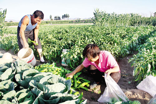 7月13日,原平市新原鄉(xiāng)解放街村農(nóng)民將收獲的青椒銷往市場。該市積極引導(dǎo)城郊農(nóng)民利用地理優(yōu)勢,大力調(diào)整種植結(jié)構(gòu),加大特色農(nóng)業(yè)開發(fā)力度,因地制宜種植紫甘藍(lán)、青椒等新鮮無公害蔬菜,不僅豐富了市民的菜籃子,而且鼓起了菜農(nóng)的錢袋子。(褚震 攝)