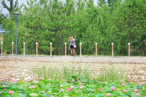 7月21日,原平市滹沱河生態(tài)公園游人正在賞荷花,品味其美麗。七月的荷花,飄香過池,清新自然的氣息,讓人心曠神怡!而在淅淅瀝瀝的細雨后賞荷花,又是一種情境:少了日曬的悶熱,或漫步荷池小道,或跨上拱橋,或合上雨傘,盡情享受雨后的清涼,欣賞池中荷花的千姿百態(tài)。