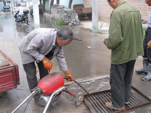 汛期以來(lái),河曲縣南園村立足于防大汛、抗大災(zāi),積極組織人員排查整治安全隱患。降雨后,個(gè)別下水道露出淤塞“真容”,村里立即請(qǐng)來(lái)管道疏通師傅,并派村民配合,發(fā)現(xiàn)一處,疏通一處,預(yù)防水災(zāi)。圖為管道疏通師傅和村民一起疏通村西頭道路下水口。(賈金理 攝)