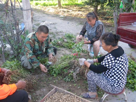 8月28日,河曲縣南園村一戶農民圍坐地頭摘花生。花生是當?shù)刂饕洕魑?,農民千方百計促其增效。賣嫩花生變是手段之一。這不,處暑剛過,農民就亟不可待地刨花生 、摘花生,搶占嫩花生“旺市”。嫩花生帶殼煮熟,是美味可口的休閑食品、饋贈佳品,備受人們喜愛。此舉豐富了市民餐桌,減輕了一次性收獲后的銷售壓力,每畝還能增收近千元,幾乎相當于多種了1畝地。(賈金理 攝)