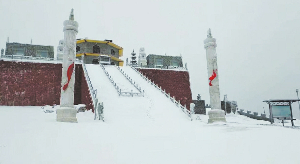 國慶長假,前往南方旅游的游人在艷陽天里穿著短袖,然而在我省五臺山山頂,卻飄起了紛紛雪花,為佛國遮上了神秘面紗。10月6日下午,一些游客穿著棉衣“沐浴”在雪地,感受佛國奇特的天氣。有人感慨說:“秋天來游五臺山,一不小心就走到了冬天。” 此次降雪主要分布在五臺山平均海拔2800米以上的五座臺頂。因?yàn)榕_頂與臺懷腹地海拔相差1000米以上,所以時(shí)有“臺懷飄雨臺頂雪”的奇觀出現(xiàn)。東臺頂亦名望海峰,《清涼山志》載:“蒸云寢壑,爽氣澄秋,東望明霞,若陂若境,即大海也。亦見滄瀛諸州,因以為名?!蓖7迨俏迮_山觀日出的絕佳位置。7日一大早,東方不見明霞,整個(gè)東臺頂銀裝素裹,霧靄茫茫,天籟梵音依舊,在圣潔的佛國仙境踏雪而行,更深切地感受人生一步一個(gè)腳印的意義。(本報(bào)記者 馬卓超 通訊員 覺一 攝影報(bào)道) (責(zé)任編輯:李冬梅) |