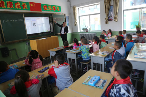 近日,在靜樂縣愛樂希望小學,學生正通過交互式多媒體教學方法上課。老師高興地說:“有了多媒體真方便,以前講一個例題要花幾分鐘抄寫在黑板上,現在只需幾秒鐘就顯示在頻幕上,既節(jié)省時間又提高課堂效率。”近年來,該縣加大教育投資力度,改善辦學條件,為學生上課提供便利。(閆曉梅 攝)
