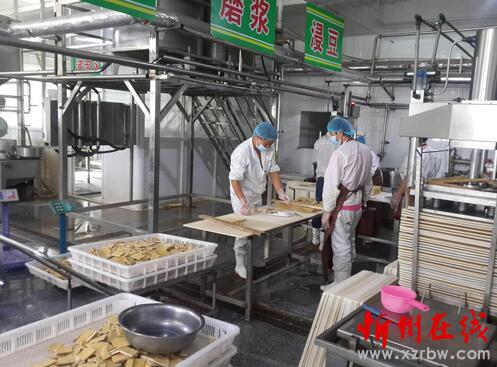 一套套全新的機械設備不停地運轉,新鮮的大黃豆經過浸泡——殺菌——磨漿——過濾——煮漿——混合——凝固——劃腦——壓制成型,透著香味的豆腐干經過真空包裝,通過物流運往北京、太原、大同等地的超市,這是繁峙縣綠源亨通食品有限公司豆腐干生產線,2016年已加工500噸豆腐干,實現產值500萬元,帶動周邊上百名農民增收。(喬偉 攝)