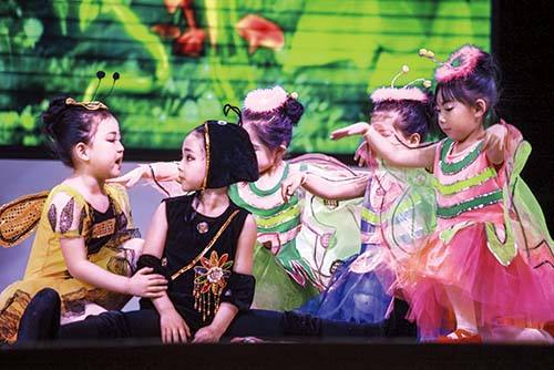 雞年喜空前,少兒展風(fēng)彩。原平雞年春晚,又一次成為該市少兒才藝展示的大平臺。舞蹈《時(shí)針時(shí)針快快跑》在溢光流彩的背景映襯下,孩子們通過別致的“時(shí)針”演示,揭示了“時(shí)不我待,與時(shí)俱進(jìn)”的主題;30人陣容的《器樂聯(lián)奏》,孩子們手腦并用,或高山流水,或絲絲細(xì)語,彰顯了蓓蕾初放的良好勢頭;語言朗誦《四季詩》既展示了孩子們清晰的口才,又讓人們感知了唐詩宋詞的魅力;大型舞蹈《盛世歡騰》格調(diào)高昂,催人奮進(jìn),孩子們龍騰虎躍的動作,展現(xiàn)出盛世美景,歌頌了全國人民實(shí)現(xiàn)中華民族偉大復(fù)興的動人圖騰。這臺別開生面的雞年少兒春晚,將給該市50萬干部群眾送上一道“色香味美”的春節(jié)文化大餐。圖為童話劇《迷路的小螞蟻》演出現(xiàn)場(藺紅/文 劉建春/圖)
