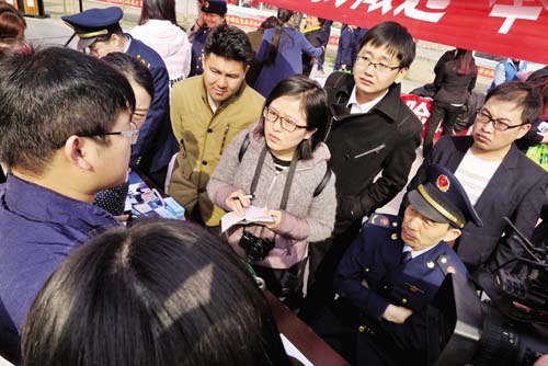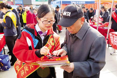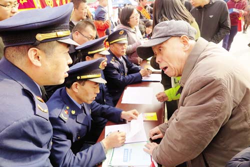 3月15日,忻州城區(qū)體育廣場上以“網(wǎng)絡(luò)誠信消費(fèi)無憂”為主題的3·15國際消費(fèi)者權(quán)益日宣傳活動(dòng)火熱進(jìn)行?;顒?dòng)現(xiàn)場,各部門和企業(yè)通過發(fā)放宣傳資料、設(shè)立咨詢臺(tái)、現(xiàn)場受理群眾投訴舉報(bào)、提供服務(wù)等方式,宣傳《消費(fèi)者權(quán)益保護(hù)法》、《反不正當(dāng)競爭法》、《無照經(jīng)營查處辦法》等法律法規(guī)以及食品藥品安全、識(shí)假辨假等各類知識(shí),吸引了眾多群眾積極參與。受理投訴臺(tái)前,陸續(xù)有消費(fèi)者前來投訴,且有不少年輕人,所反映的問題既有涉及家具、汽車等金額較大的線下消費(fèi)活動(dòng),也有通過電商平臺(tái)進(jìn)行的線上交易。市工商局、消費(fèi)者協(xié)會(huì)的工作人員將消費(fèi)者投訴的問題一一記錄在冊(cè),并表示會(huì)盡快調(diào)查處理。本版圖片攝影 魯明強(qiáng) 王 菲