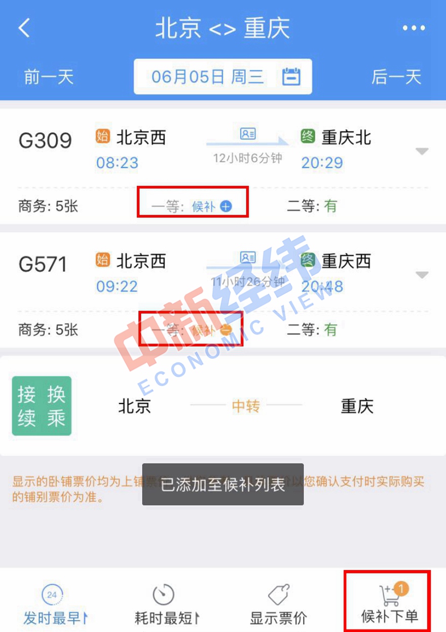 中新經(jīng)緯客戶端以12306的APP為例,為大家演示“候補(bǔ)購票”的具體操作步驟: