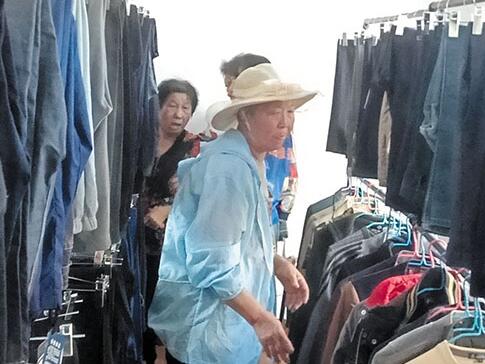 圖為社區(qū)居民正在愛(ài)心驛站里挑選適合自己的衣服(張志遠(yuǎn))