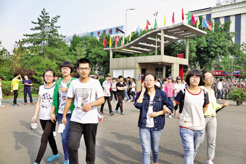 圖為6月6日下午5時,忻州一中考點的考生們進(jìn)入校區(qū),確認(rèn)、熟悉考場環(huán)境。