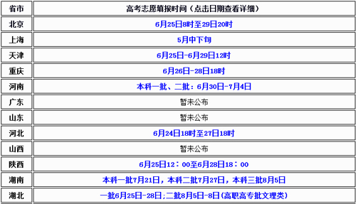 全國(guó)各省市2016年高考志愿填報(bào)時(shí)間匯總