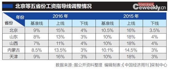 文章導(dǎo)讀: 企業(yè)工資指導(dǎo)線(下稱“工資指導(dǎo)線”)從1997年出臺(tái),至今已20年。按照慣例,各省份在每年上半年就會(huì)發(fā)布。不過,截至7月20日,《中國(guó)經(jīng)濟(jì)周刊》 記者發(fā)現(xiàn),僅有天津、北京、山東、山西、內(nèi)蒙古等五省份發(fā)布了2016年工資指導(dǎo)線,并且多是下調(diào)基準(zhǔn)線。