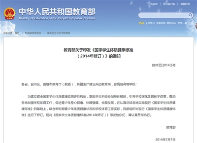 目前學校實行的相關(guān)體測標準依據(jù)的是2014年教育部印發(fā)的《國家學生體質(zhì)健康標準》。 網(wǎng)絡截圖
