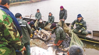 馬總稱,沁湖大約有200多畝,這批魚是今年二三月份的時候往沁湖里投放的,當時投放的魚苗達一萬斤左右,均為白鰱、花鰱、草魚等品種,“我們在水底種了水草,平時還配了一點魚飼料?!?/p>