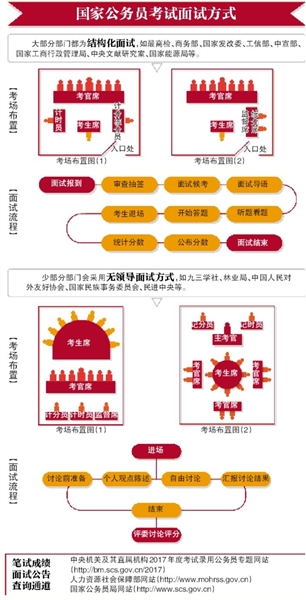 國家公務(wù)員考試的面試都有結(jié)構(gòu)化的流程,一般考生需要提前10-30分鐘到達指定面試地點報到,之后,考生抽簽確定分組和進場順序。輪到某考生入場時,引導(dǎo)員將到候考室叫號。