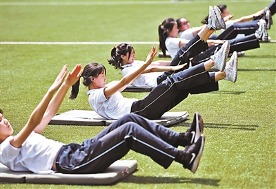 仰臥起坐,慢跑、拋擲實(shí)心球、排球……昨天上午10時(shí)35分,北京市第十八中學(xué)初三(8)班同學(xué)們的體育課開始了。3位體育老師帶著同學(xué)們?cè)诓賵?chǎng)上進(jìn)行體育鍛煉。據(jù)悉,下月中旬,本市初三的學(xué)子們將迎來(lái)中考體育考試。與往年不同,今年北京中考體育考試在考試時(shí)間上調(diào)整為6月10日開始、7月1日前完成。在組織形式上改為隨堂考試。