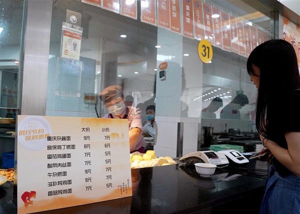 上海交通大學(xué)的食堂的各類(lèi)面條實(shí)行大份、小份供餐。9月1日起,上海交通大學(xué)的學(xué)生開(kāi)始分批、錯(cuò)時(shí)到校開(kāi)學(xué)。開(kāi)學(xué)后,學(xué)校食堂加強(qiáng)節(jié)約糧食、光盤(pán)行動(dòng)的宣傳,并采取多項(xiàng)措施引導(dǎo)師生員工文明用餐,杜絕浪費(fèi)。