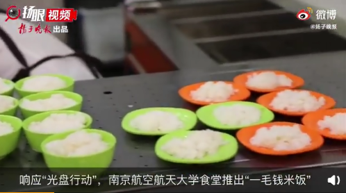 南京航空航天大學(xué)食堂不僅推出“一毛錢(qián)米飯”,還推出“光盤(pán)獎(jiǎng)勵(lì)”,只要“光盤(pán)”,便能得到酸奶等獎(jiǎng)勵(lì)。