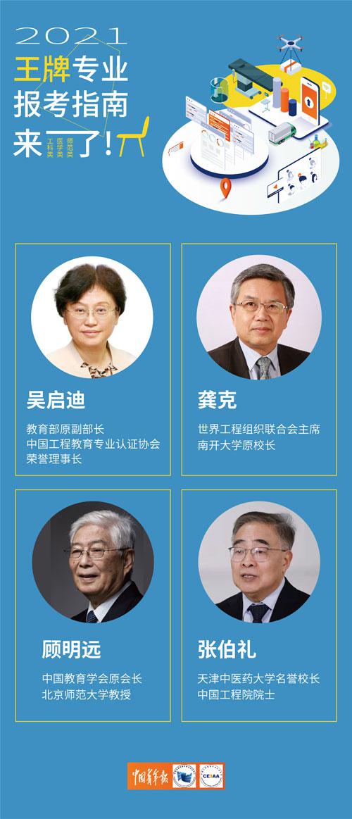 這幾天,隨著全國多個省份陸續(xù)公布高考分?jǐn)?shù)線,眾多考生進(jìn)入高考志愿填報階段——也許,這是他們迄今為止的人生中最重要的一場選擇。是選擇文科、理科還是工科?是看眼前的熱門還是看長久的發(fā)展?是選學(xué)校還是選專業(yè)?……在教育部高等教學(xué)評估中心和中國工程教育專業(yè)認(rèn)證協(xié)會的支持下,《中國青年報》特地采訪了四位學(xué)界“大咖”:教育部原副部長、中國工程教育專業(yè)認(rèn)證協(xié)會榮譽理事長吳啟迪,世界工程組織聯(lián)合會主席、南開大學(xué)原校長龔克,中國教育學(xué)會原會長、北京師范大學(xué)教授顧明遠(yuǎn),天津中醫(yī)藥大學(xué)名譽校長、中國工程院院士張伯禮。請他們以自己的人生的閱歷和經(jīng)驗為考生們指點迷津。