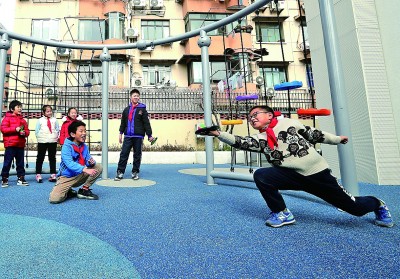 上海市徐匯區(qū)凌云街道凌云新村社區(qū),孩子們在一起玩耍。新華社發(fā)