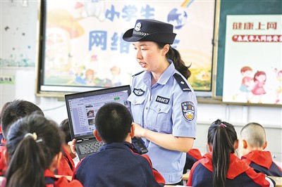 6月13日,江蘇省海安市公安局墩頭派出所民警走進轄區(qū)小學,開展未成年人預防網(wǎng)絡沉迷和網(wǎng)絡陷阱的安全教育,引導鄉(xiāng)村兒童樹立正確的上網(wǎng)觀,做到文明健康上網(wǎng),增強網(wǎng)絡安全意識。周 強攝(人民視覺)