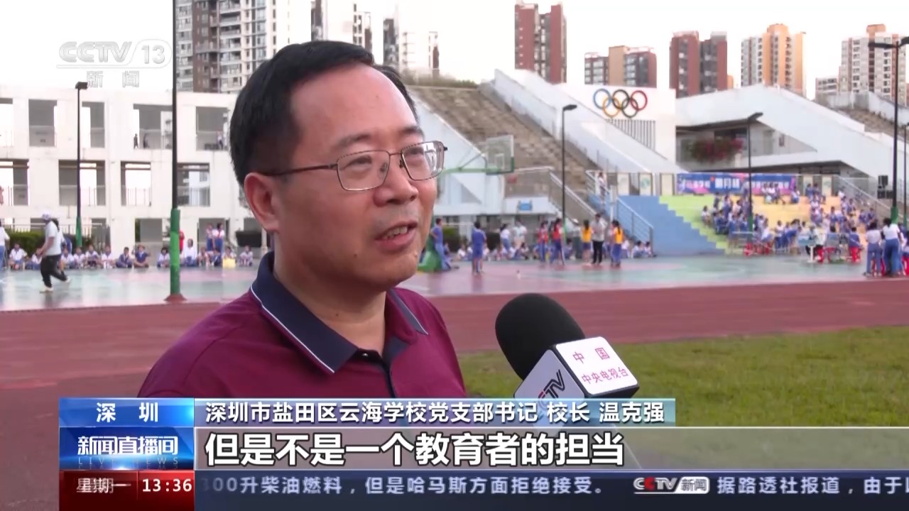 深圳市鹽田區(qū)云海學(xué)校黨支部書(shū)記、校長(zhǎng) 溫克強(qiáng):怕出事情,怕?lián)?zé)任,就把學(xué)生課間圈養(yǎng),確實(shí)這個(gè)是省時(shí)省力,但是不是一個(gè)教育者的擔(dān)當(dāng),也不是一個(gè)學(xué)校的擔(dān)當(dāng)。應(yīng)該尊重教育規(guī)律,要為孩子們的健康著想。希望我們的孩子在這邊讀9年,他會(huì)科學(xué)地鍛煉,有這種鍛煉的好習(xí)慣,熱愛(ài)體育,熱愛(ài)生活,這就是我們追求的方向和育人目標(biāo)。