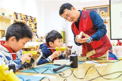 從無到有建造科普“車間”并非易事。為了滿足需求,陳少華自掏腰包,花了10多萬元購置3D打印機(jī)、機(jī)器人教學(xué)套件、兒童木工機(jī)床等設(shè)施。自己研發(fā)科普課程、親手制作教學(xué)套件……在本職工作之外,陳少華幾乎把所有的業(yè)余時(shí)間都花在了“21世紀(jì)車間”上。