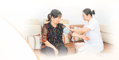 盛思敏入戶(hù)為居民測(cè)量血壓。