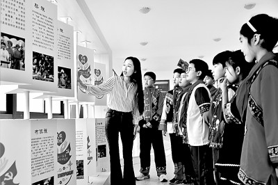 江蘇省如皋經(jīng)濟(jì)技術(shù)開(kāi)發(fā)區(qū)第三實(shí)驗(yàn)小學(xué)“紅石榴家園”,統(tǒng)戰(zhàn)部門工作人員向?qū)W生介紹各民族文化習(xí)俗。吳樹(shù)建攝/光明圖片