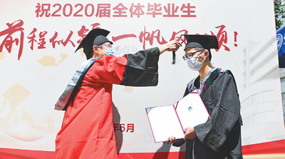 接過(guò)學(xué)位證書,本科畢業(yè)生蔡杰和院長(zhǎng)拍了一張合影。他說(shuō):“沒有遺憾了,這個(gè)畢業(yè)典禮特殊而完美!”