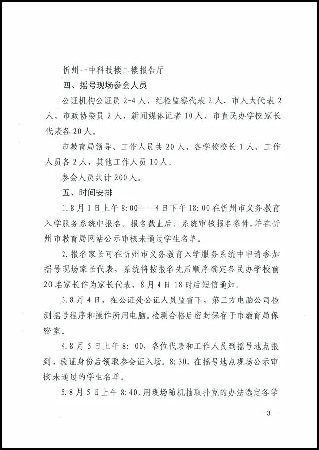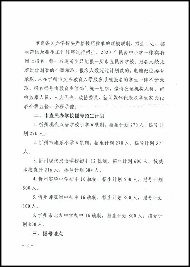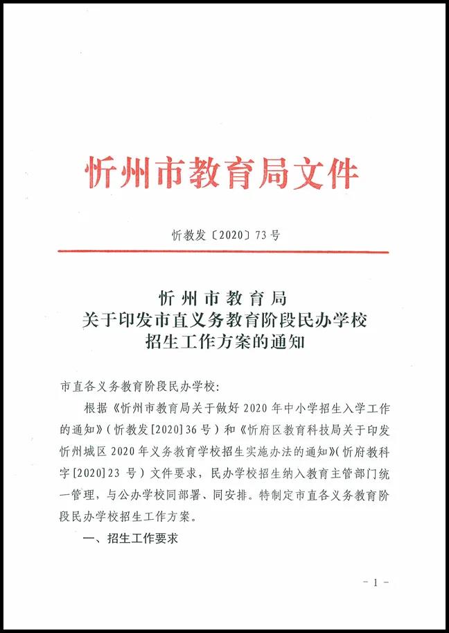 忻州市教育局關于印發(fā)市直義務教育階段民辦學校招生工作方案的通知