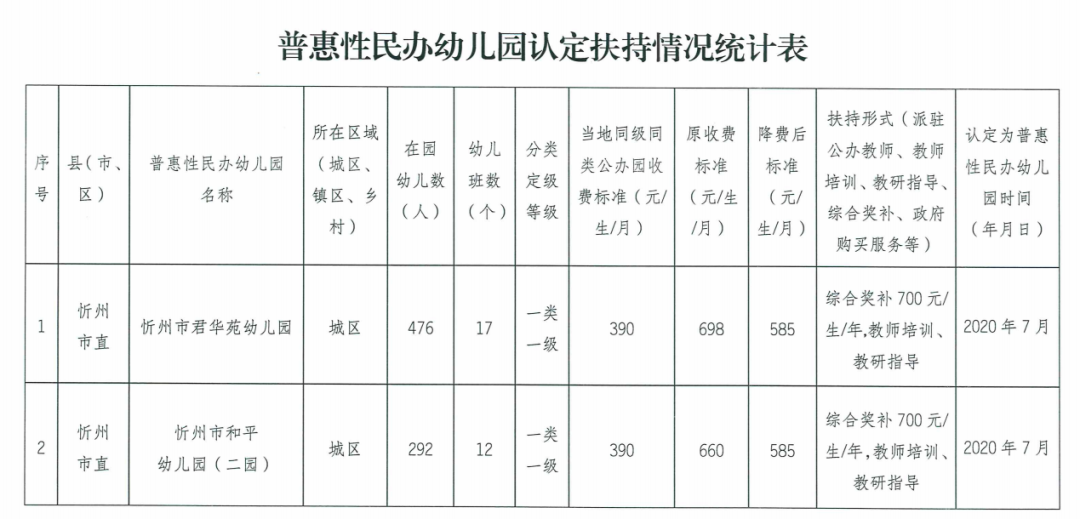 忻州市教育局關于認定2所市直普惠性民辦幼兒園的通知