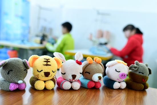 11月9日,在貴州省遵義市鳳岡縣特殊教育學(xué)校拍攝的學(xué)生們制作的手工藝品。