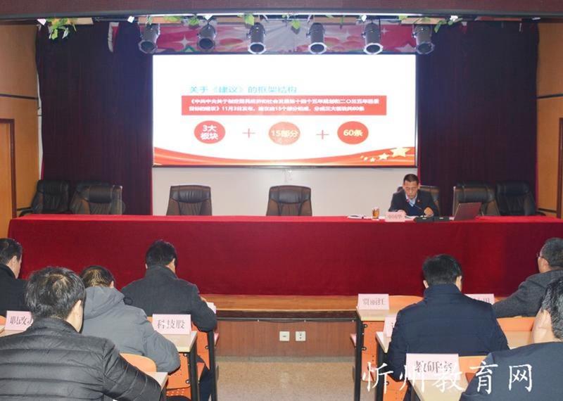 11月28日,原平市教科系統(tǒng)召開黨的十九屆五中全會精神宣講報告會,市委宣講團成員、市教科局黨組書記、局長申國華作宣講報告。市教科局主任科員、機關支部書記賈毅主持報告會。教科系統(tǒng)各學校校長、書記,局機關各科室負責人參加報告會。